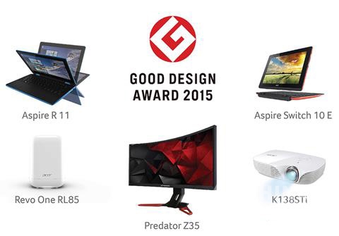 宏碁再度獲得2015年度國際產(chǎn)品設計大獎之一的Good Design獎項肯定,此次獲獎產(chǎn)品橫跨多元產(chǎn)品線,包括迷你 PC Revo One、可翻轉(zhuǎn)筆電Aspire R 11、二合一筆電Aspire Switch 10 E、曲面電競熒幕Predator Z35以及可攜式LED投影機K138STi。