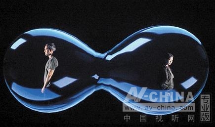 象是以計(jì)算機(jī)程序?qū)懗鰜淼摹妇薮笈菖荨,投影在反射膜上時(shí),演員站在定點(diǎn),看起來就象是住在泡泡里,隨機(jī)地推動(dòng)泡泡,使其一分為二或是合而為一;或是丹麥演員把自家場景運(yùn)用4D技術(shù)投影至舞臺(tái),雖然是身在臺(tái)灣舞臺(tái),但丹麥生活卻呈現(xiàn)于觀眾眼前。
