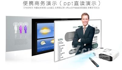 美高G10觸屏商務(wù)微型投影機(jī)不僅能投射高清大屏畫面,而且可以使用筆在投射畫面輕松標(biāo)注、書寫、觸控。整個投影畫面就像一個大的平板電腦,商務(wù)交流更輕松。