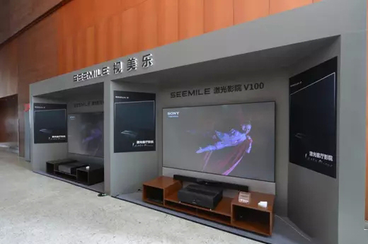 激光電視與超短焦激光投影機是近年內(nèi)的熱門話題,其宣傳推廣方面主要以功耗低、廣色域、短距離大畫面等作為重點而大舉殺入家用影音領(lǐng)域。其中,激光電視實際上由一臺超短焦激光投影機加上一塊“冷屏”組成,有著良好的抗環(huán)境光效果。像INESA(儀電電子)、光峰光電、視美樂這三家國產(chǎn)品牌就亮出了它們的激光電視產(chǎn)品。不過,目前的激光電視的投影部分和屏幕部分都是分離的。對于客戶而言,這樣的設(shè)計在使用時還是不夠方便,不夠快捷。因此,嚴(yán)格來講激光電視還不能完全地稱得上是電視。畢竟單一的超短焦激光投影機同樣可以搭配一塊“冷屏”來達到與激光電視相同的目的,而且要尋找一塊具有抗環(huán)境光干擾能力的投影幕也不是難事。這次展會上,有展示超短焦激光投影機的參展商們都采用這種搭配方式來演示。所以我們認(rèn)為,如果激光電視要更好地體現(xiàn)出“電視”這兩個字,那就需要把投影部分和屏幕部分做成一體化,那么才能算得上真正意義上的電視,然后再配上多聲道音響就能得到一個客廳影院解決方案了。