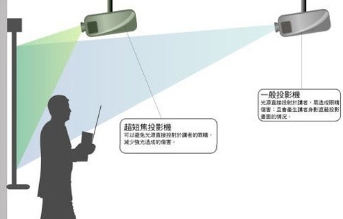 相比于穿透投影,短焦投影解決了操作者遮擋投影的問題