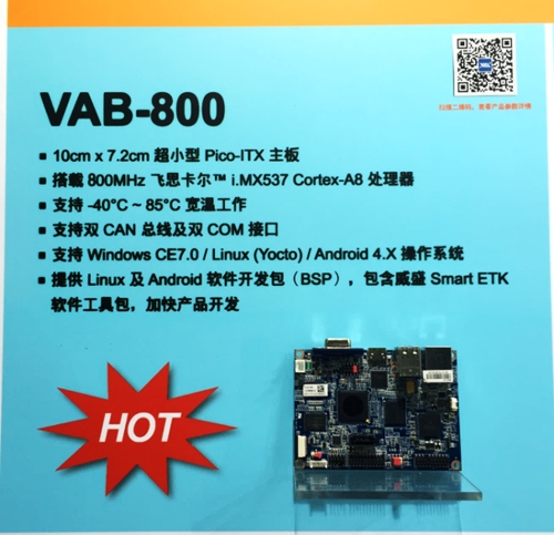 威盛VAB-800因其低功耗ARM架構(gòu),超小Pico-ITX板型,支持Windows CE7.0 / Linux(Yocto) / Android 4.X 操作系統(tǒng),寬溫范圍達(dá)-40℃~85攝氏度,成為本次展會中最受歡迎的主板。