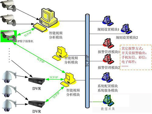 當前視頻分析技術用于視頻監(jiān)控通常有兩種方案:一種是后端智能視頻分析方案。這種模式下所有的前端攝像機僅僅具備基本的視頻采集功能,而所有的視頻分析都必須匯集到后端或者關鍵節(jié)點處由計算機統(tǒng)一處理。優(yōu)勢是可以靈活切換服務器取流的前端設備,對任意的前端設備都可以應用智能視頻分析功能,而且后續(xù)軟件升級更方便快捷。缺點是當服務器數(shù)量較多時會占用較大的空間,只適合控制若干關鍵的監(jiān)控點,對網(wǎng)絡的帶寬有一定的要求。另一種是視頻分析前端解決方案,顧名思義就是將智能視頻分析算法集成在前端攝像機中,一臺攝像機就可以實現(xiàn)智能分析,所有的目標跟蹤、行為判斷、報警觸發(fā)都是由前端智能分析設備完成,只將報警信息通過網(wǎng)絡傳輸至監(jiān)控中心。優(yōu)點是無需將視頻傳輸回監(jiān)控中心,對連接前端設備的網(wǎng)絡帶寬要求低,而且后端無需設置服務器機房,節(jié)省空間,目前市場上這種方式居多。不過其也有不足,就是無法靈活切換各個前端設備的分析類型,一旦系統(tǒng)建設完成,無法改變特定前端設備的智能類型。