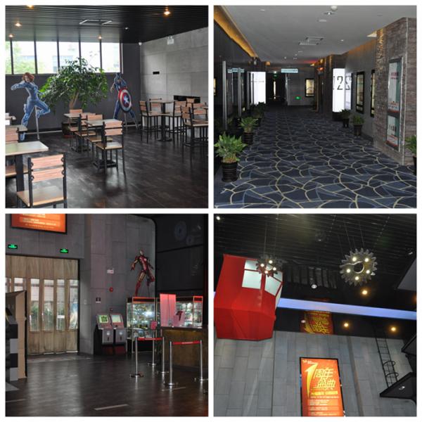 銀興菲林影城的一樓售票大廳內(nèi)隨處可見“復(fù)仇者”們的真人大小版畫、二樓精心布置的休息區(qū)清爽明亮,天花板上保留了大量原廠改建時的“齒輪吊燈”和“吊車裝飾”元素,整個影城大廳充斥著電影時尚與工業(yè)滄桑感的混搭設(shè)計,給人第一眼以強烈的視覺感受。