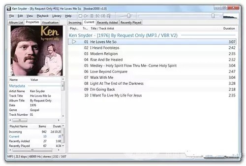 (1)Foobar2000可以說是Windows系統(tǒng)中的音樂播放神器,不僅支持所有的音頻文件格式,同時通過它的不同DSP組件還能與專業(yè)的VST插件進行橋接、重采樣、多聲道輸出等等,另外它還具有完全的界面UI自定義功能,當然它的音質(zhì)也是媲美于專業(yè)的音頻工作站,最后它所擅長的就是播放列表管理功能了,這個功能特別適合于現(xiàn)場節(jié)目較多的情況。