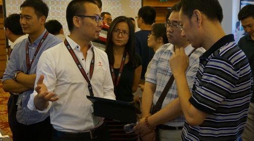 活動現(xiàn)場,TENDZONE東微為參會者展示了最新的e-Media多媒體交互式云平臺。專業(yè)的產(chǎn)品演示和精彩的演講引發(fā)了參會代表們對e-Media的濃厚興趣,活動現(xiàn)場不時有參會代表詢問e-Media功能、行業(yè)應(yīng)用及實(shí)現(xiàn)效果等問題。