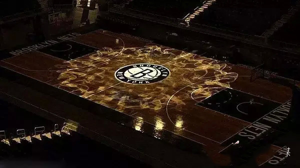 上圖為布魯克林籃網(wǎng)隊在紐約巴克萊體育場內(nèi)布置的賽場