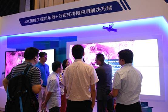而“4k旗艦工程顯示器+分布式拼接應(yīng)用解決方案”當(dāng)之無愧成為活動(dòng)當(dāng)天最具有磁場吸引力的方案之一,現(xiàn)場4臺(tái)2*2超窄屏系列4K旗艦工程顯示器X554UNS進(jìn)行拼接,同時(shí)與一臺(tái)98寸4K旗艦工程顯示器X981UHD進(jìn)行對(duì)比,擁有高達(dá)3840 ×2160的4K分辨率,保證了超清的畫質(zhì)效果,捕獲了觀眾的注意力,加之NEC特有的專用色彩引擎配合SpectraView Ⅱ軟件可以對(duì)顯示器進(jìn)行亮度,黑場亮度,色彩空間,白點(diǎn),Gamma曲線做精確的色彩調(diào)節(jié),輕松快捷實(shí)現(xiàn)專業(yè)色彩管理,引領(lǐng)了一個(gè)新時(shí)代的視覺體驗(yàn)。