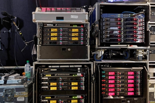 ECHO 2015中的所有無線監(jiān)聽系統(tǒng)都是來自Sennheiser,使用了無數(shù)的EK 2000入耳式監(jiān)聽耳機(jī)和EK 300入耳式監(jiān)聽耳機(jī)G3腰包,無線系統(tǒng)專家Svenja Dunkel負(fù)責(zé)頻段的協(xié)調(diào),在AW頻率段中安排了12條無線頻率鏈接(SR 2050入耳式監(jiān)聽雙通道信號發(fā)射器),還在LTE信號間隙(823-832 MHz)中安排了6條額外的無線射頻鏈接。