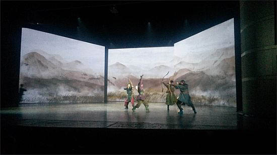其中,雁丘詞亮點(diǎn)之一就是首次在舞劇舞臺(tái)上大規(guī)模使用投影技術(shù),摒棄繁雜的實(shí)景搭建,絕大多數(shù)舞臺(tái)布景效果變換通過(guò)三塊巨幕投影實(shí)現(xiàn)。中部屏幕高8米長(zhǎng)12米,兩側(cè)兩塊各高6米長(zhǎng)8米,創(chuàng)同類舞劇舞臺(tái)投影之最。從繁華都市到潑墨山水,從氣象萬(wàn)千到四季輪回,從風(fēng)到雪,從天地到人間,均在這三方巨幕上呈現(xiàn)。如此化繁為簡(jiǎn)的神奇妙筆,為《雁丘詞》開(kāi)啟了一扇門(mén),觀眾可以穿越千年,共賞詩(shī)情畫(huà)意,感悟永恒之愛(ài)。