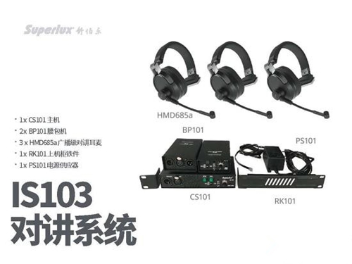 IS-103系統(tǒng)的標準配置包括,1個CS101小型主機(含喇叭)、1個PS101外接電源供應(yīng)器、2個BP101腰包機和3個HMD685a單耳對講耳機,根據(jù)實際需要可以選購多個配件以擴展到多人同時使用。