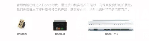 傳輸部分: 音頻傳輸已進入了Dante時代,通過接口機實現(xiàn)低延時,高保真及良好的擴展性,為滿足專業(yè)級、消費級等各種場景的應(yīng)用需求,聲菲特推出了DACO 22, Dbox44-I, DACO 1616等多種接口機。