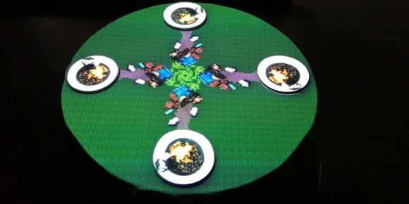 將用一臺5000流明、全高清1080P的明基激光投影機LU950單臺投影到桌面,除了基本的餐具,絢麗的全息畫面完全倚賴上方的投影機,定制片源點對點投映餐桌及餐具,再利用3D投影映射技術(shù)和動作捕捉技術(shù),將餐桌布置成一場趣味表演秀的“舞臺”。