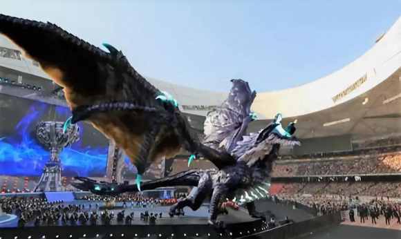 這一切看起來(lái)無(wú)疑讓人興奮,因?yàn)橐坏⿲?shí)現(xiàn),則意味著全場(chǎng)數(shù)萬(wàn)觀眾可以像觀看一場(chǎng)足球或籃球比賽一樣,看著電競(jìng)比賽中的角色以3D立體形象出現(xiàn)在實(shí)體的峽谷中并進(jìn)行對(duì)戰(zhàn)。