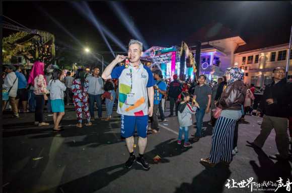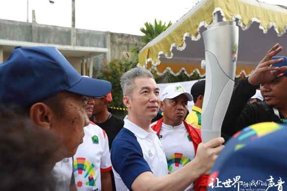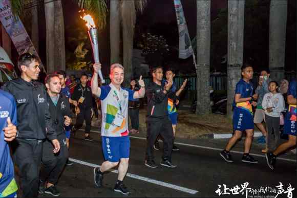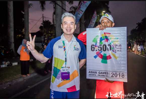 當(dāng)日銳豐科技總經(jīng)理凌子斌在瑪瑯城內(nèi) IDJEN BOULEVARD大街上進行火炬的傳遞。印尼當(dāng)?shù)貢r間7點左右,在喧鬧的呼聲中亞運會火炬終于來到了凌子斌總經(jīng)理的手中。