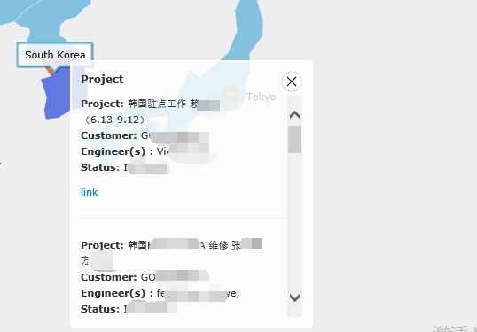 你以為我的工作就此結(jié)束了嗎?當然不會!我不僅僅有信息查詢的作用,還能進行服務(wù)監(jiān)控哦!小方到了目標地點為客戶服務(wù),會將自己的信息上傳給我,他的所在國家、地址、服務(wù)的客戶等。我會在“人員地圖”上為他點亮代表他的小標簽。這樣的話如果在同一地點還有其他需要服務(wù)的訂單,我們就可以聯(lián)系小方了。