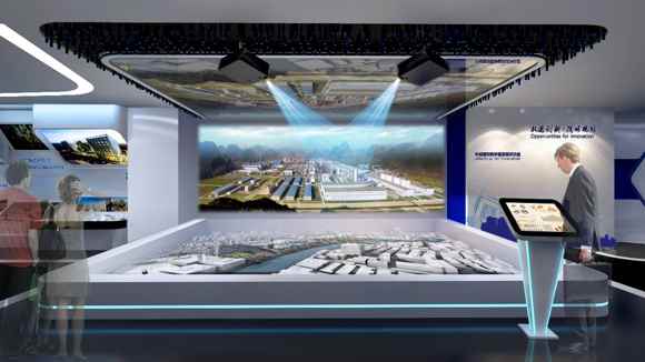 數(shù)字全息投影沙盤,首先讓參觀者了解中鋁國際的國家亮點(diǎn)工程的沙盤演繹。