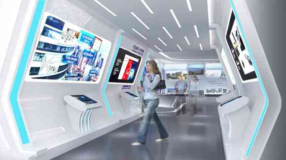 未來科技感空間造型搭配電子簽名,讓參觀者參觀后能夠給與留言。