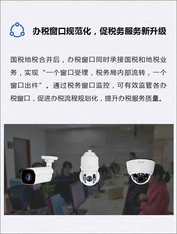 6月15日,全國(guó)省級(jí)新稅務(wù)機(jī)構(gòu)統(tǒng)一掛牌。在國(guó)稅地稅合并的新環(huán)境下,科達(dá)將充分挖掘視頻信息化技術(shù)對(duì)稅務(wù)工作的推動(dòng)作用,為深化稅務(wù)系統(tǒng)改革提供產(chǎn)品和解決方案,助力實(shí)現(xiàn)稅務(wù)工作遠(yuǎn)程溝通日;、會(huì)議協(xié)同便捷化、稅務(wù)稽查執(zhí)法規(guī)范化、稅務(wù)數(shù)據(jù)可視化。
