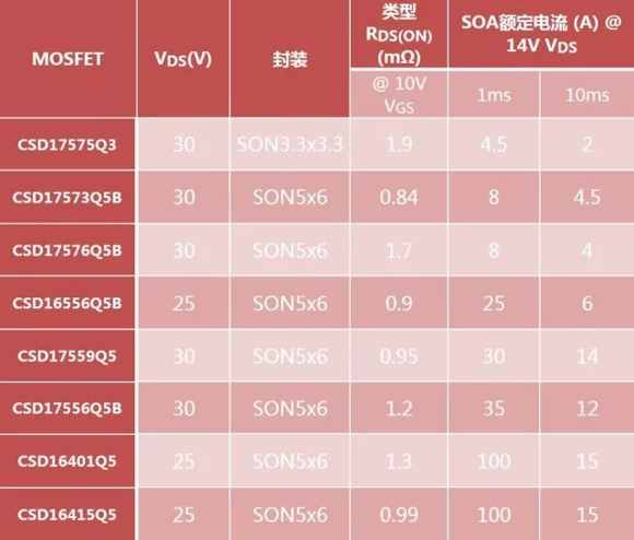 表2:用于24V熱插拔的MOSFET