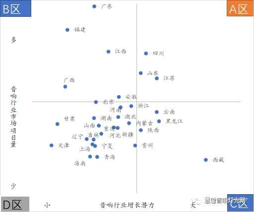 統(tǒng)計范圍:增長潛力根據(jù)近兩年該地區(qū)項目增長率計算,行業(yè)項目量根據(jù)近半年來公開市場音響設(shè)備招標量、計算