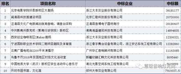 我們從上半年1.1萬筆項目中,挑出中標金額最大的十筆涉及音響設(shè)備的采購和安裝項目,采購甲方大部分來自政企和教育市場,其中北京電影學(xué)院新校區(qū)的劇院舞臺音響設(shè)備采購和安裝是上半年音響設(shè)備采購和安裝最大的項目,金額超過3600萬;而閩清縣科技館建設(shè)項目舞臺設(shè)備采購和安裝服務(wù)以及汪清縣文化廣電的音響、調(diào)音臺項目采購也超過2000萬。