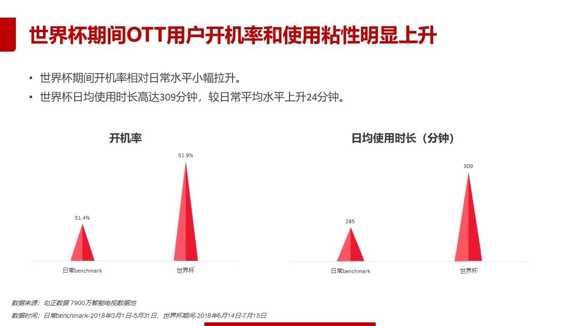 OTT作為新興媒體,2018世界杯可以說是它的試金石,以上的數(shù)據(jù)表現(xiàn)也從側(cè)面反映出其未來的媒體價值。相信隨著智能電視保有量的提升、用戶規(guī)模的擴大,接下來的四年,它的發(fā)展會迎來黃金期。