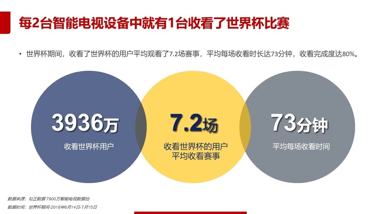 截止2017年底勾正數(shù)據(jù)已聯(lián)合覆蓋智能終端7900+萬臺,具備為OTT行業(yè)提供科學、系統(tǒng)的大數(shù)據(jù)運營與營銷服務的全方位解決方案,此次與AdMaster、當貝市場合作推出《2018世界杯OTT大屏用戶使用及廣告市場研究報告》,旨在衡量OTT大屏在世界杯期間的用戶使用和廣告市場表現(xiàn)。
