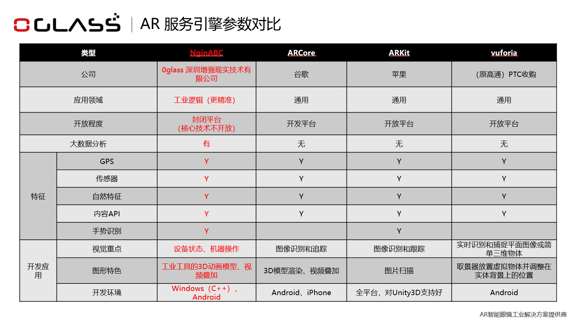 第二、工業(yè)級(jí)算法。0glass專注做工業(yè)AR,算法也是其核心。目前全球做工業(yè)級(jí)AR算法的公司,據(jù)我們了解僅有三家: