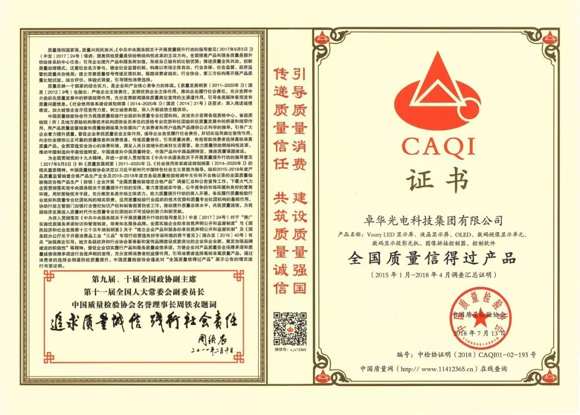 誠信,是企業(yè)立足之本,也是決定企業(yè)發(fā)展是否長遠(yuǎn)的必要條件,品質(zhì)是企業(yè)的生命,Voury卓華作為業(yè)界領(lǐng)先的大屏幕顯示及拼接控制整體解決方案提供商,旗下高端系列產(chǎn)品——“小間距LED顯示屏”、“微間距LED顯示屏”、“圖像拼接控制器”、“控制軟件”等榮獲由中國質(zhì)量檢驗(yàn)協(xié)會(huì)頒發(fā)的“全國質(zhì)量信得過產(chǎn)品”權(quán)威證書。這是對Voury卓華產(chǎn)品質(zhì)量最有力的肯定!