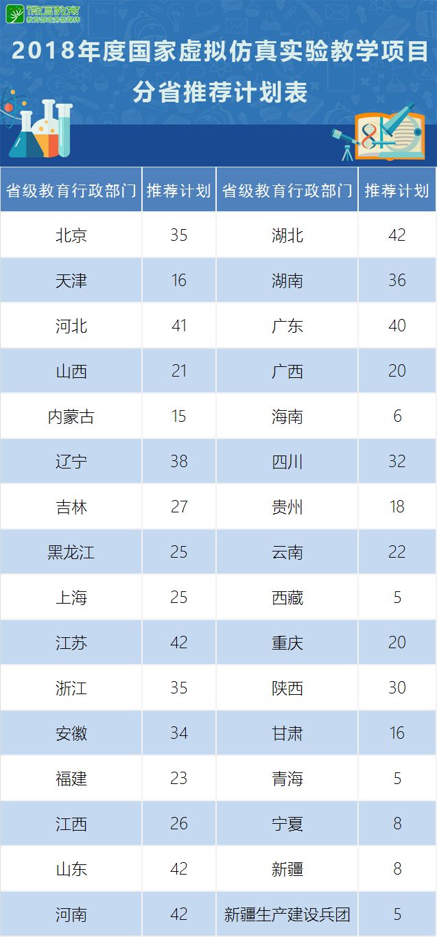 省級(jí)教育行政部門是2018年度國家虛擬仿真實(shí)驗(yàn)教學(xué)項(xiàng)目的推薦主體,負(fù)責(zé)所在省級(jí)區(qū)域范圍內(nèi)申報(bào)主體的推薦工作。