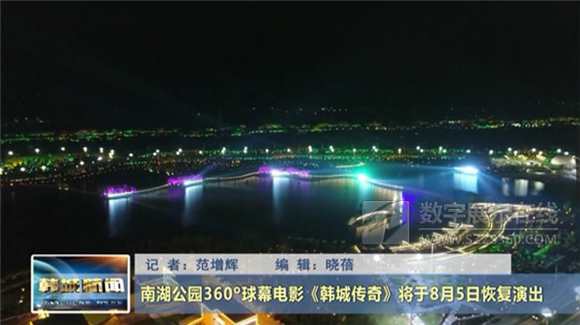 8月5日起,南湖公園360°球幕電影《韓城傳奇》將恢復(fù)演出。每晚演出兩場,時(shí)間分別為晚上8:00和9:00。