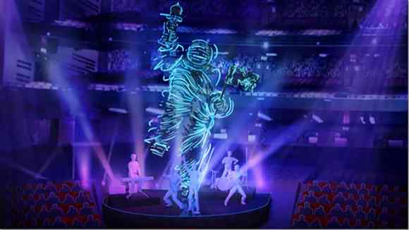 其中包含LED霓虹燈繩索的Moon Man的第二階段也是一個(gè)非常酷的標(biāo)志性設(shè)計(jì),頒獎典禮來到紐約,就通過Moon Man(這是一個(gè)標(biāo)志性的VMA視覺識別身份)與自由女神像結(jié)合起來創(chuàng)造出專屬于紐約這場舞臺的月亮人物來慶祝這個(gè)盛典。這個(gè)設(shè)計(jì)也令設(shè)計(jì)團(tuán)隊(duì)興奮不已,特別創(chuàng)造的Moon Man為舞臺的集合創(chuàng)造了專屬背景。