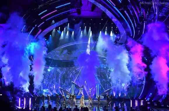 今年VMA布景設(shè)計(jì)靈感來源于音樂廳內(nèi)部無線電城的標(biāo)志性圓形建筑,設(shè)計(jì)師將場地的圓形舞臺融入他的設(shè)計(jì)元素中,根據(jù)曲線和圓形運(yùn)動創(chuàng)造了這個(gè)別具一格的舞臺。