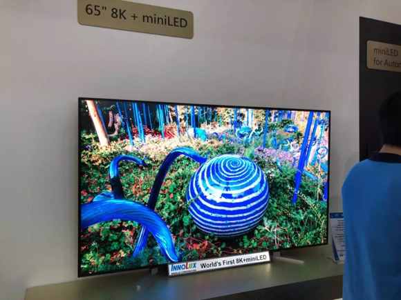 群創(chuàng)這次展示的65英寸AM Mini LED 8K顯示器,具備高色飽和度(>94%BT2020 cover ratio,125%NTSC)、高動態(tài)對比(1,000,000:1)、廣視角低色偏、藍(lán)光護(hù)眼無色偏等四大特點,預(yù)計將于2019年第二季量產(chǎn)上市。同時也將展示65英寸8K Mega-Zone,強調(diào)解析度是同尺寸OLED的4倍,在相同功耗下,亮度為4K OLED電視的兩倍以上。