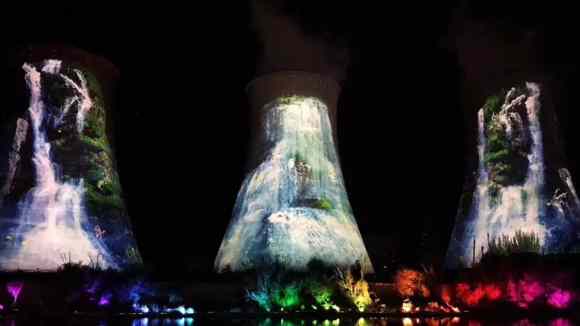 Redline用三臺媒體服務(wù)器控制12臺40000流明的NEC投影機(jī)和8臺巴可32000流明投影機(jī)實(shí)現(xiàn)對三個(gè)凝水塔的投影。