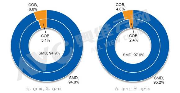 3月初,雷曼光電發(fā)布第三代COB小間距產(chǎn)品引發(fā)了COB小間距產(chǎn)品一陣追捧,各廠商紛紛上馬COB產(chǎn)品,形成“無(wú)COB不罷休”之勢(shì)。根據(jù)奧維云網(wǎng)(AVC)市場(chǎng)調(diào)查顯示,COB產(chǎn)品前期市場(chǎng)推廣和培育已成效,終端市場(chǎng)認(rèn)可度發(fā)生明顯改觀,上半年COB小間距銷售額達(dá)1.62億元,其中二季度COB小間距銷售額占比從5.1%提升至6%。