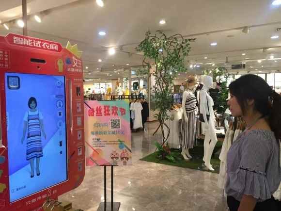 通過(guò)體感技術(shù),廣告機(jī)變成了“體感試衣鏡”