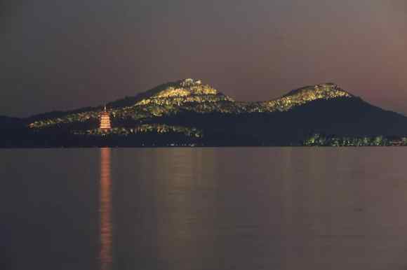 入夜后的西湖是很動人的,一盞盞相繼亮起的景觀燈,把寶石山,城隍閣,湖中三島裝點成黑夜中最閃耀的星星。