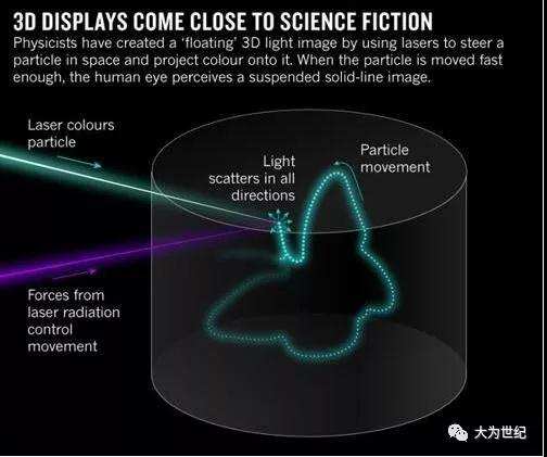 Smalley的團隊采取了一種不同的方法,利用所謂的體三維顯示(volumetric display)技術來創(chuàng)建用戶能夠從任意角度感知的移動3D圖像。部分物理學家表示,這種技術更接近于《星球大戰(zhàn)》電影中的萊婭公主3D投影。英國格拉斯哥大學的光學物理學家Miles Padgett說道:“這能夠做到全息圖所不能做到的事情,亦即為你提供一種全視角的視圖,一種萊婭公主式的顯示圖像,因為這根本就不是全息圖。”