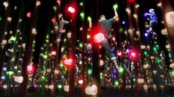 “體育森林(athletics forest)”是teamlab的另一個(gè)靈感,即把創(chuàng)意和肢體行為融為一體,既能促進(jìn)大腦發(fā)育,也能訓(xùn)練人們的空間意識。游客們能夠在發(fā)光的寶石組成的攀巖裝置上體驗(yàn)3D燈光,還有一個(gè)像“boing boing universe”一樣的地方供人們跳躍,一個(gè)擁有不同高度、不同斜坡的巨大3D“山脈”。游客們參與進(jìn)來,完全沉浸在交互式的數(shù)字藝術(shù)作品中,將會給他們帶來一次印象深刻的創(chuàng)意體驗(yàn)。