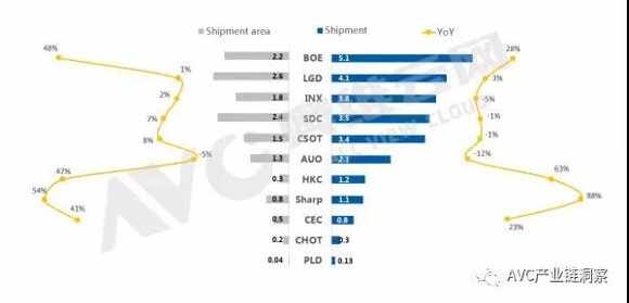 SDC:出貨量為3.5M,同比微降1%,環(huán)比增長16%,通過產(chǎn)品向大尺寸調(diào)整,出貨面積同比增長7%。