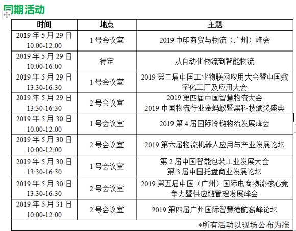 同期展會:2019第10屆中國(廣州)國際物流裝備與技術展覽會