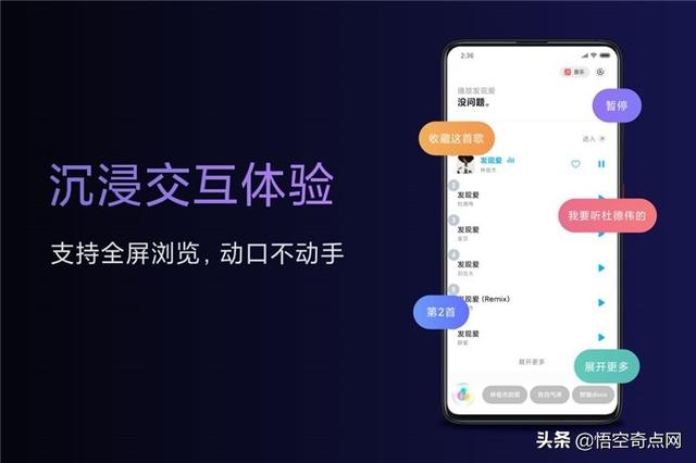 支持全屏瀏覽,無論內(nèi)容多長,都可以輕松閱讀。當(dāng)你使用小愛3.0時(shí),頁面上你能看到的可以點(diǎn)擊的地方,都可以用語音指令來操作。例如,聽音樂,您可以輕松地選擇歌曲、裁剪歌曲、收集、播放和直接切換版本,例如“我想聽實(shí)時(shí)版本”,而不必單擊移動(dòng)屏幕、移動(dòng)嘴、使用語音指令輕松選擇歌曲、剪切歌曲、收集、播放和直接切換版本。比如說“我要聽live版”。(目前支持聽音樂、找視頻、查菜譜、聽有聲節(jié)目等場景,未來將拓展到更多場景中)