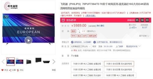 飛利浦70PUF7364/T3 目前京東最新售價5989元,并且有促銷活動正在進行,購買可加送價值約219元飛利浦臺燈!在售后方面,飛利浦更是讓您高枕無憂:免費安裝+30天只換不修+整機3年保修。