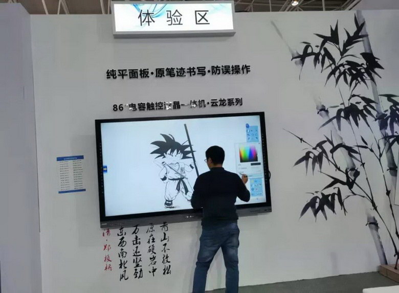86寸電容觸控一體機(jī).云龍系列純平面板,猶如原筆跡書寫,現(xiàn)場(chǎng)畫師作畫筆記如手繪般,同時(shí)可進(jìn)行防誤操作,書寫更加順暢。