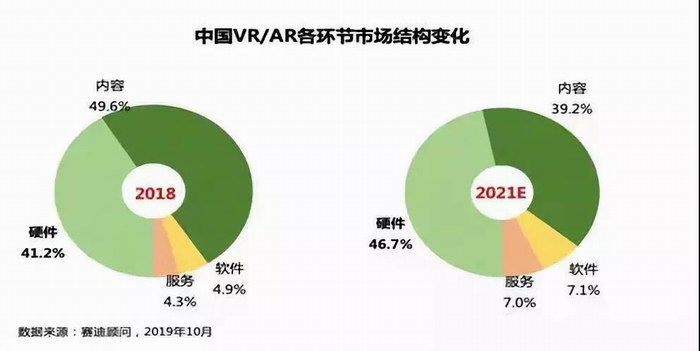 硬件作為VR/AR產(chǎn)業(yè)的基礎(chǔ)環(huán)節(jié),資本對(duì)其的態(tài)度能夠在一定程度上反映整個(gè)產(chǎn)業(yè)發(fā)展?fàn)顩r,2017年產(chǎn)業(yè)進(jìn)入低谷,硬件比重下降,而2018年硬件比重大幅上升表明市場(chǎng)回暖,預(yù)計(jì)未來(lái)市場(chǎng)將進(jìn)入穩(wěn)定發(fā)展階段,硬件將成為布局VR/AR市場(chǎng)的利好機(jī)會(huì),未來(lái)將引領(lǐng)市場(chǎng)實(shí)現(xiàn)持續(xù)增長(zhǎng)。