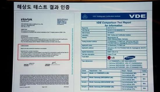 數(shù)位LG高管在上周六舉行的一場IFA 2019新聞發(fā)布會上做出了一番評論,LG代表指出,產(chǎn)品測試和認證機構(gòu)Intertek和VDE通過對三星、LG和索尼商用8K電視進行測試,其結(jié)果顯示,三星的QLED 8K電視的明暗對比度調(diào)制(CM,Contrast Modulation)僅為12%,遠低于8K標準50%的閾值,而索尼8K電視的CM為70%,LG自己的產(chǎn)品為90%。