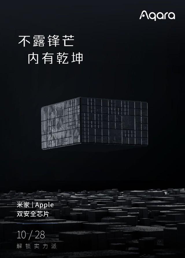 從宣傳海報中稱“外享便捷,內擁乾坤,采用米家、Apple雙安全芯片,10月28日解鎖實力派”,海報正中間是一個黑色的立方體。
