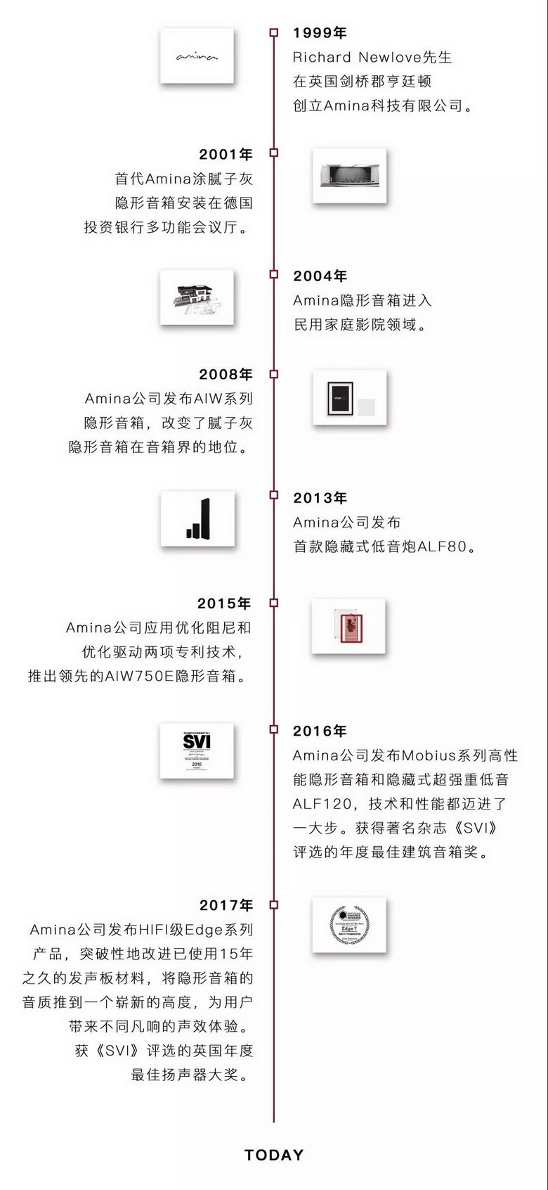 自1999年至今,Amina已專注隱形音箱20年,一直努力追求創(chuàng)新,不斷改善技術(shù),以適應(yīng)工藝的發(fā)展和時(shí)尚的變化。
